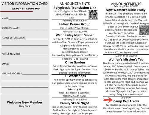 We have AWANA, Adult Bible Study, Men's Bible Study, Praise Team, Choir, Women's Ministry, and more.
