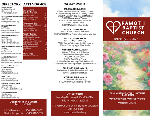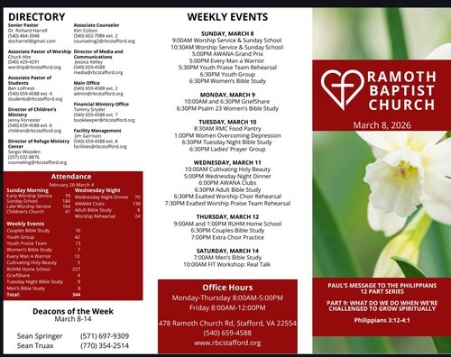 RAMOTH BAPTIST CHURCH IS AFFILIATED WITH THE SOUTHERN BAPTIST CONVENTION OF VIRGINIA.
