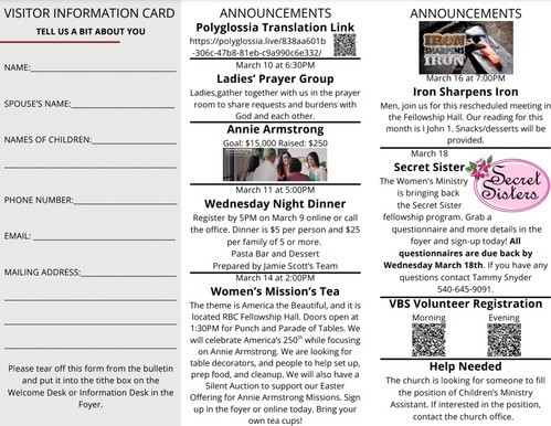 We have AWANA, Adult Bible Study, Men's Bible Study, Praise Team, Choir, Women's Ministry, and more!