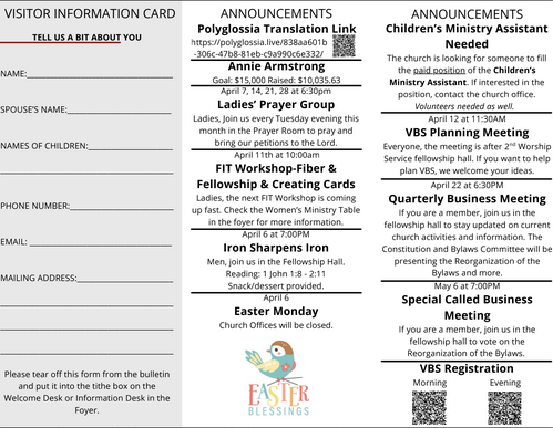 Hispanohablantes, utilicen el enlace de traducción de Polyglossia durante el servicio y todo se traducirá a su teléfono en tiempo real.