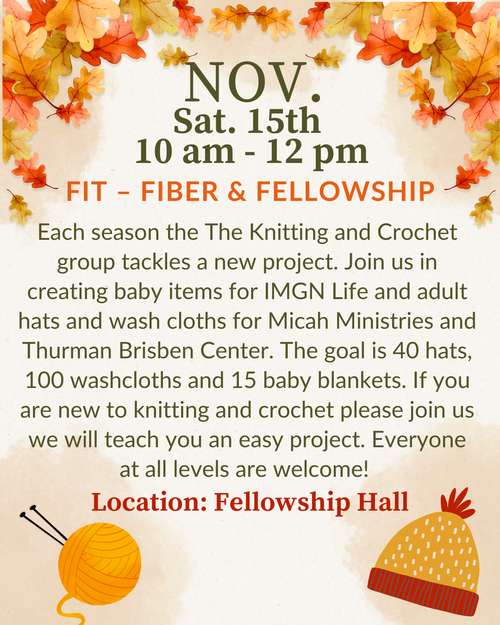 November 11th and 25th join us in the prayer room (located in the Sanctuary to the left of the stage).