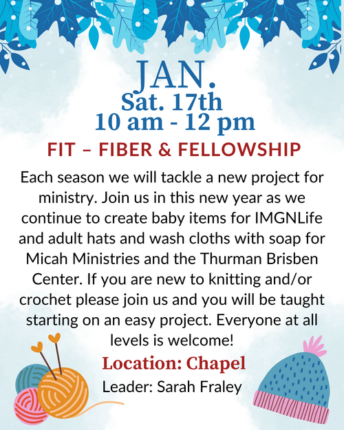 Keep an eye out for upcoming workshops (see below) and the complete Winter calendar at the Women’s Ministry table or online.